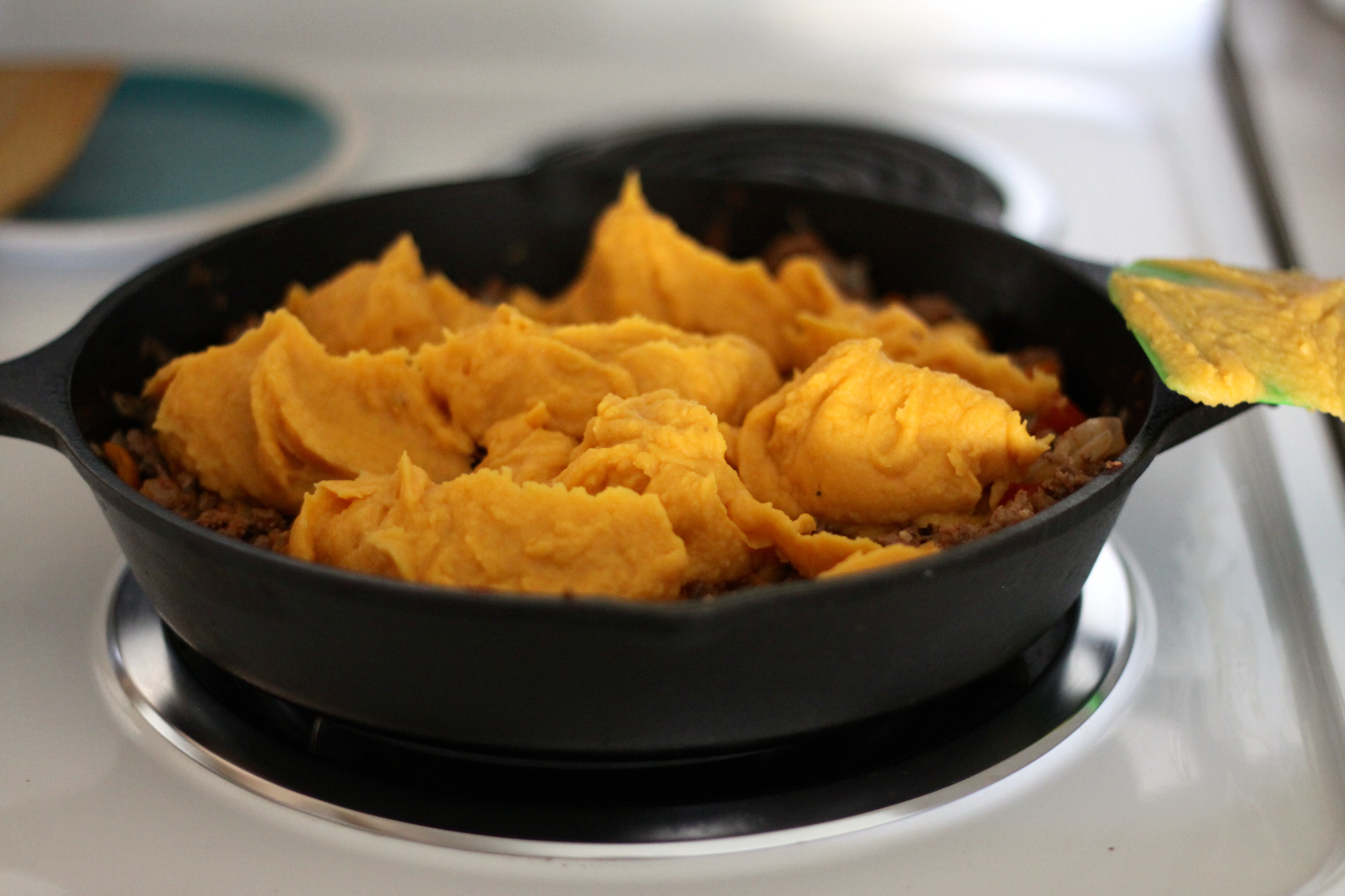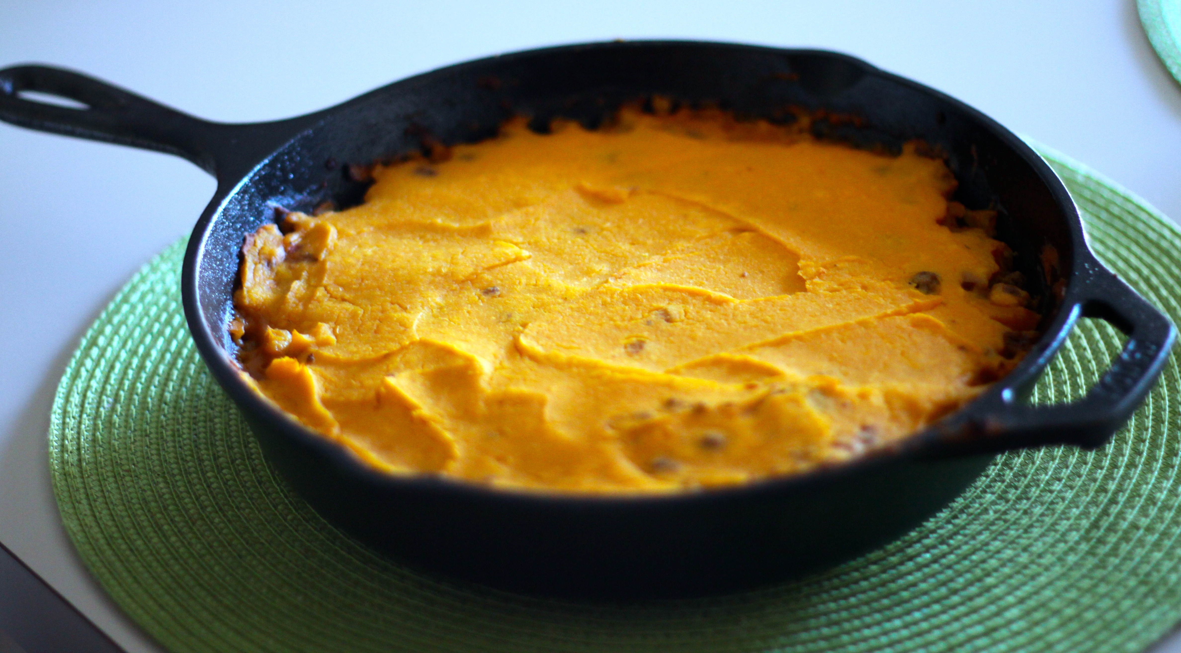 IMG_9236This shepherd’s pie is a fun spin on the traditional and you know I definitely prefer the sweet potato to regular potatoes! And I’ve never liked peas, so I kicked them out! But feel free to add your own! Maybe the best thing about this shepherd’s pie is that if you have a cast iron skillet (or oven safe skillet), it’s a one dish meal. Which means less clean up! Amen.