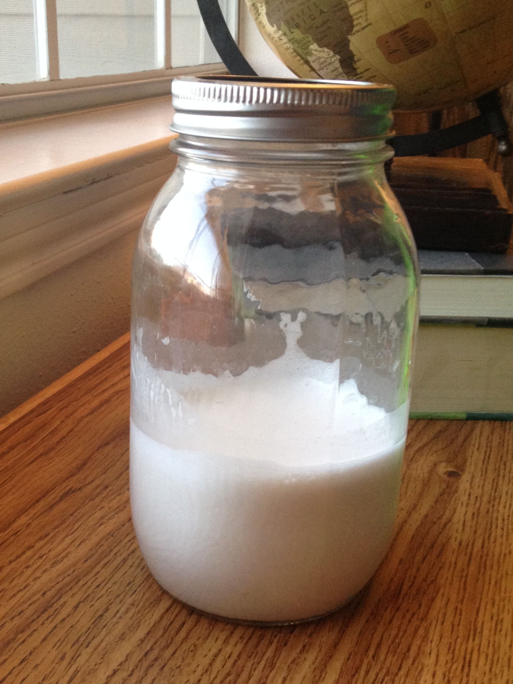*Another trick to making this step work well is to find something that is the size of your strainer so that it fits nicely. You can transfer the milk after you make it. This does not have to be your storage container.