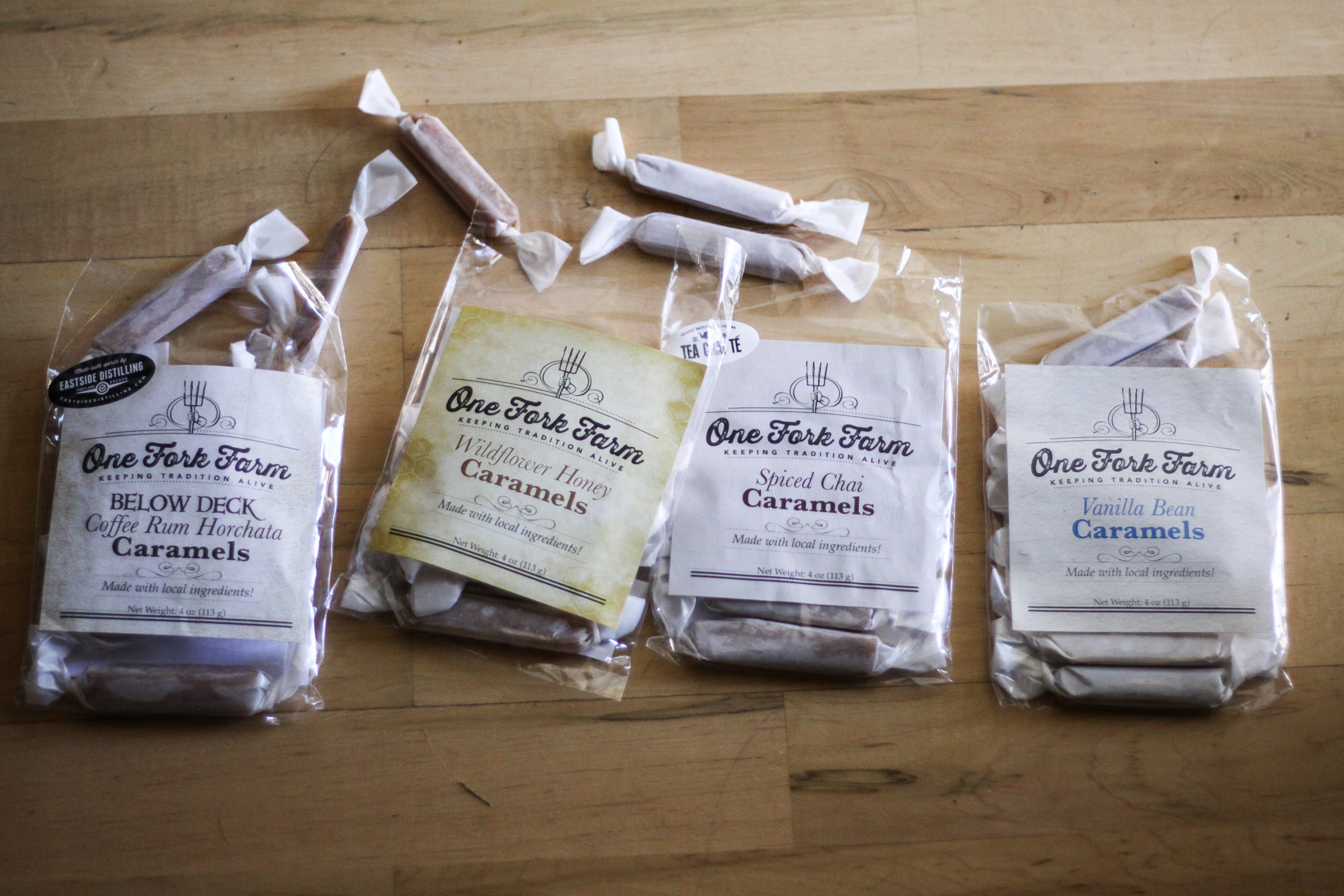 I am so excited to tell you about One Fork Farm! I met Dave and Jessica Herzog at the Wine Country Half Marathon about a month ago. They were helping us to refuel after the race, sampling these rich, smooth, and unique caramels. I have to be honest, after a run and some wine…I wasn’t feeling up for too many samples. But I got to hear a little bit about Dave and Jessica and their farm in the Willamette Valley and have since learned more. The name “One Fork Farm” was born out of a sweet story (I’ll let you read it on their website) and a desire to live simply, meaningfully, and joyfully. I love it.